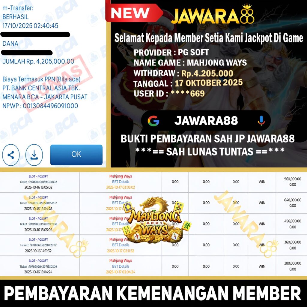 • Integritas Pembayaran: Tekankan bahwa Pemenang Jackpot Mahjong Ways Jawara88 selalu menerima kemenangan Lunas Tuntas 100%.