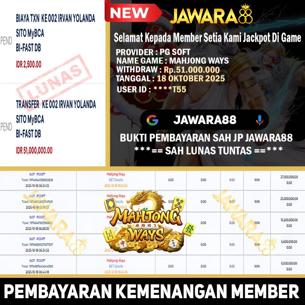 - Transaksi Cepat dan Aman: Proses WD Rp51.000.000 milik pemenang ini membuktikan bahwa sistem pembayaran di Jawara88 sangat terpercaya.